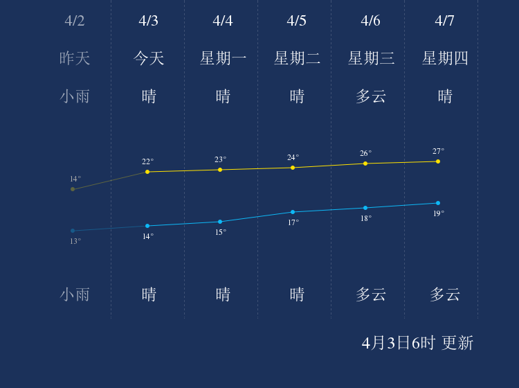 中国天气网讯 今天是4月3日星期日,一起来看天气。