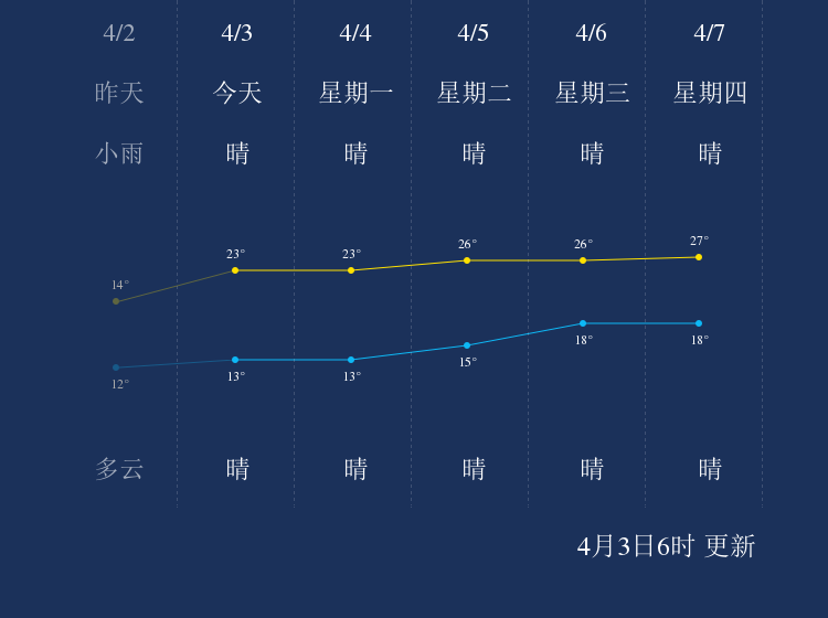 中国天气网讯 今天是4月3日星期日,一起来看天气。