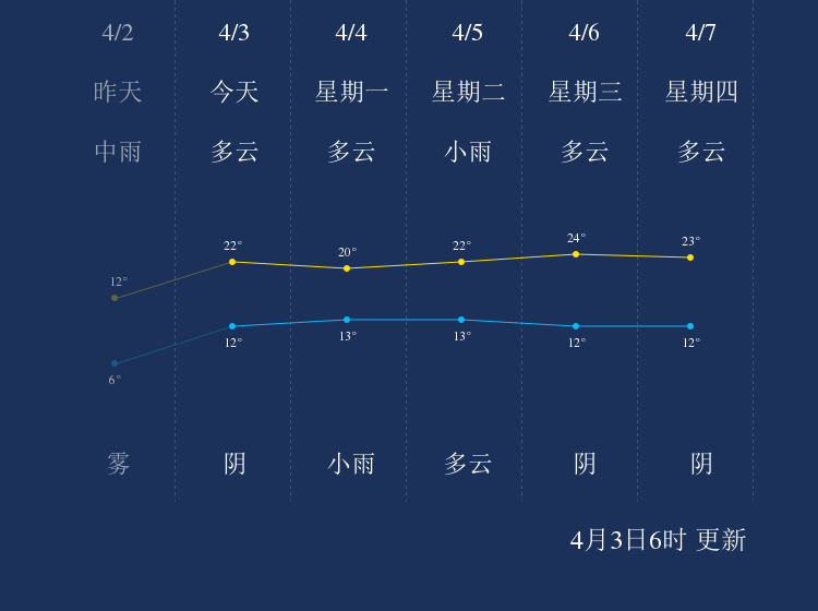 中国天气网讯 今天是4月3日星期日,一起来看天气。