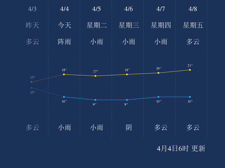中国天气网讯 今天是4月4日星期一,一起来看天气。