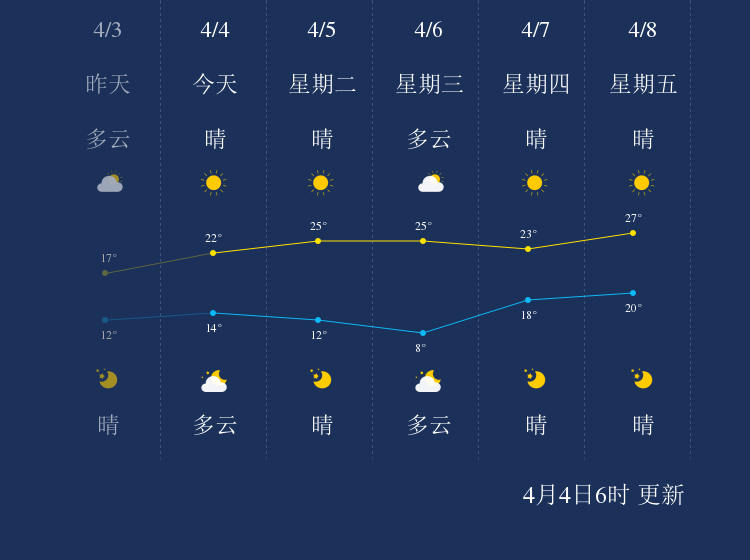 中国天气网讯 今天是4月4日星期一,一起来看天气。