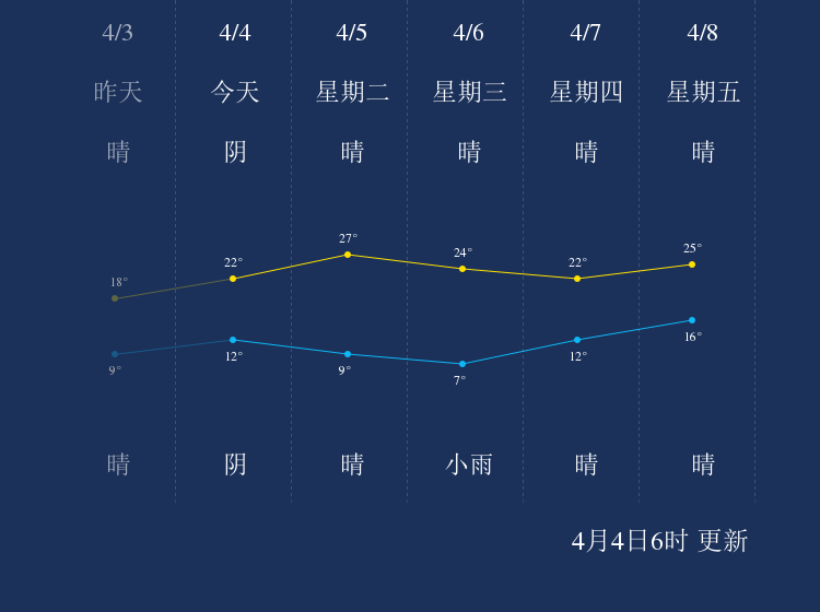 中国天气网讯 今天是4月4日星期一,一起来看天气。