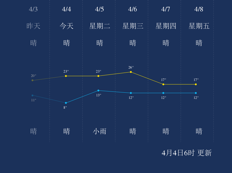 中国天气网讯 今天是4月4日星期一,一起来看天气。