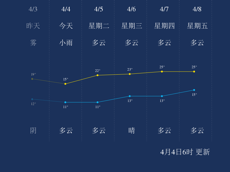 中国天气网讯 今天是4月4日星期一,一起来看天气。