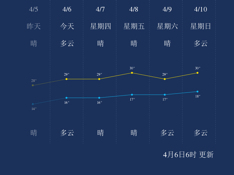 中国天气网讯 今天是4月6日星期三,一起来看天气。