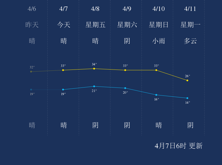 中国天气网讯 今天是4月7日星期四,一起来看天气。