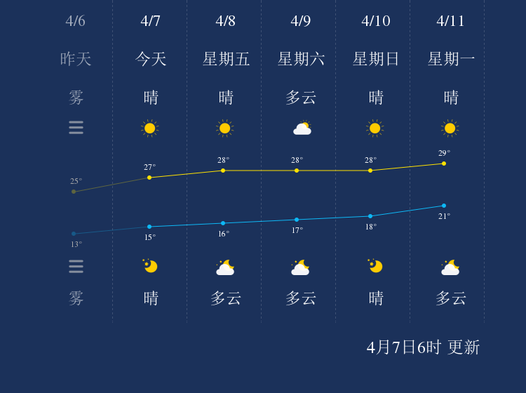 中国天气网讯 今天是4月7日星期四,一起来看天气。