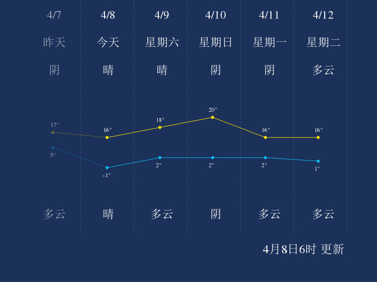 中国天气网讯 今天是4月8日星期五,一起来看天气。