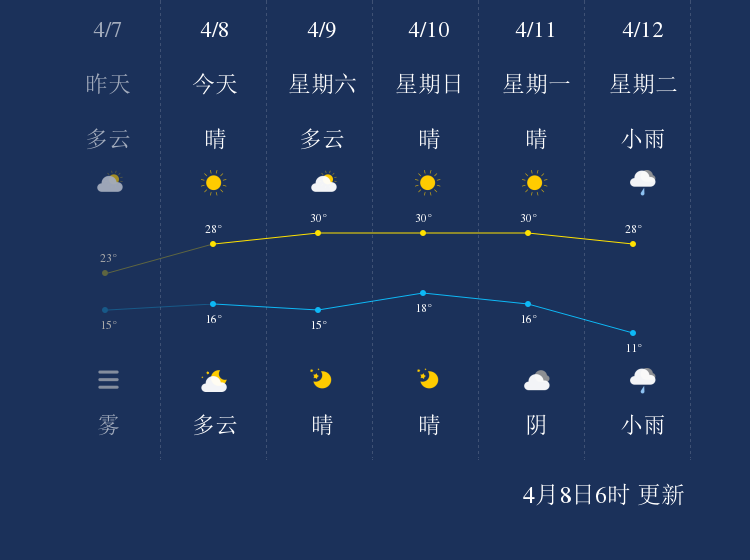 中国天气网讯 今天是4月8日星期五,一起来看天气。