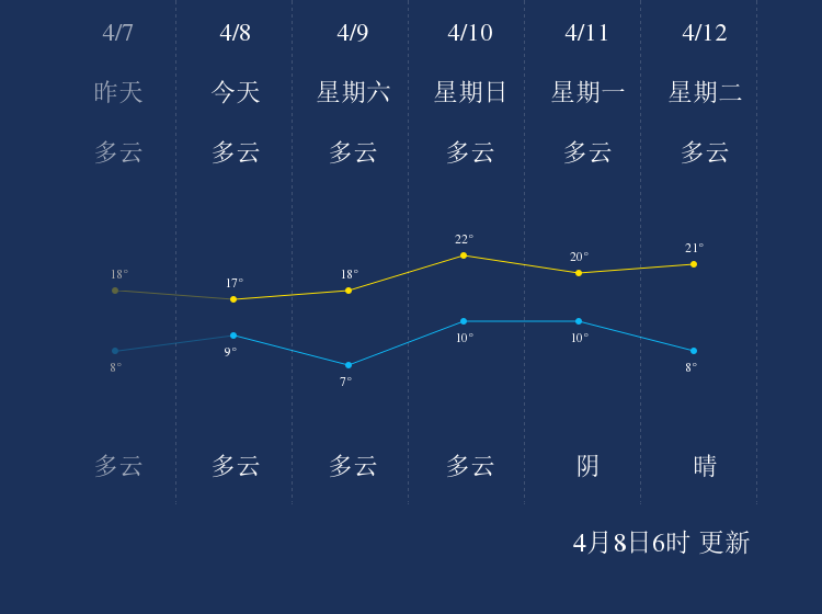 中国天气网讯 今天是4月8日星期五,一起来看天气。