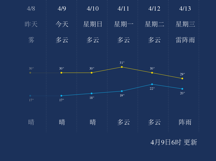 中国天气网讯 今天是4月9日星期六,一起来看天气。