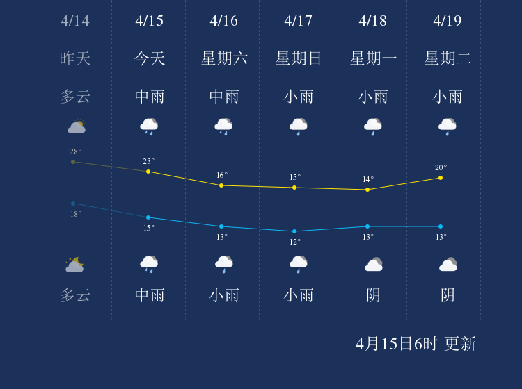 中国天气网讯 今天是4月15日星期五,一起来看天气。