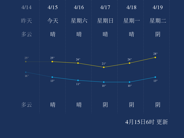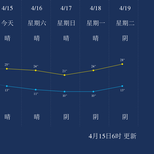 中国天气网讯 今天是4月15日星期五,一起来看天气。