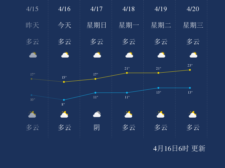 中国天气网讯 今天是4月16日星期六,一起来看天气。