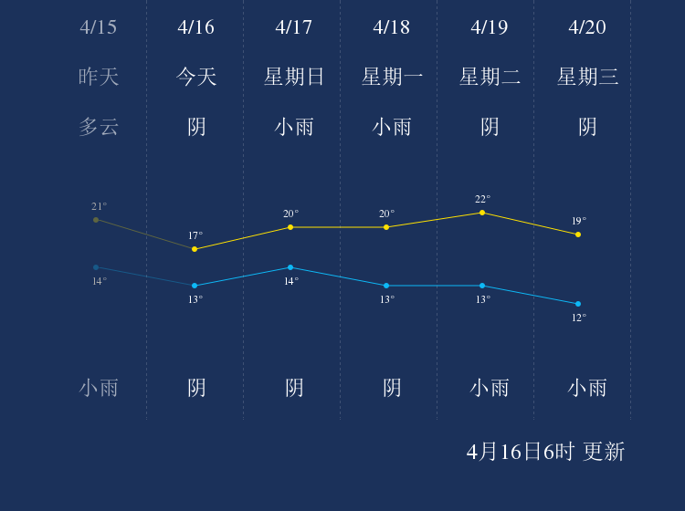 中国天气网讯 今天是4月16日星期六,一起来看天气。
