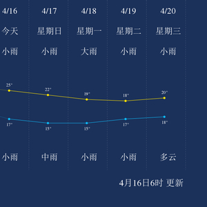 - 降水提醒:预计今天有小雨、明天有小雨转中雨。出门记得带伞并注意交通安全。