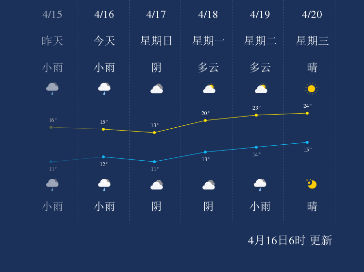 中国天气网讯 今天是4月16日星期六,一起来看天气。