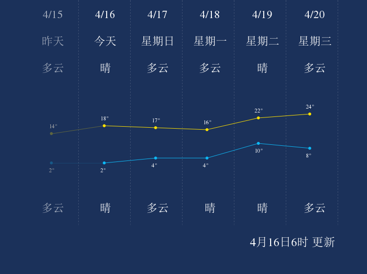 中国天气网讯 今天是4月16日星期六,一起来看天气。
