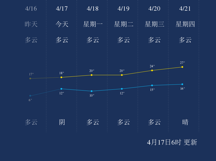 中国天气网讯 今天是4月17日星期日,一起来看天气。