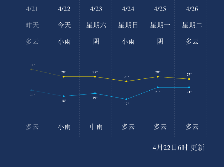 中国天气网讯 今天是4月22日星期五,一起来看天气。