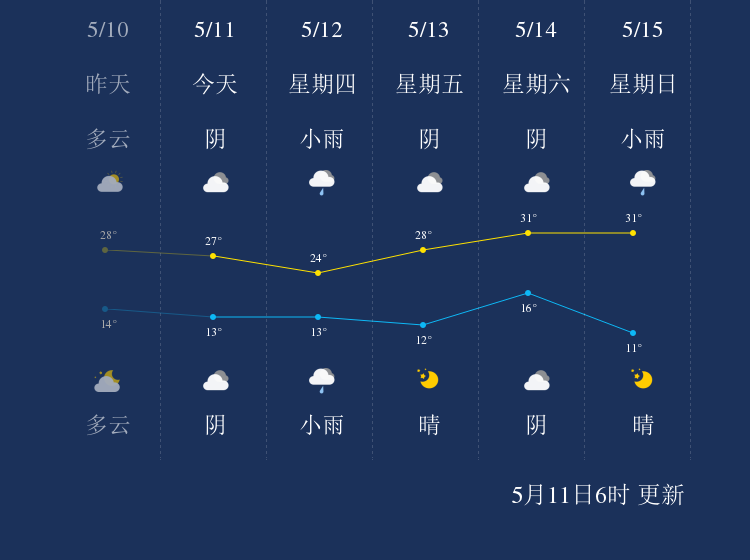 中国天气网讯 今天是5月11日星期三,一起来看天气。