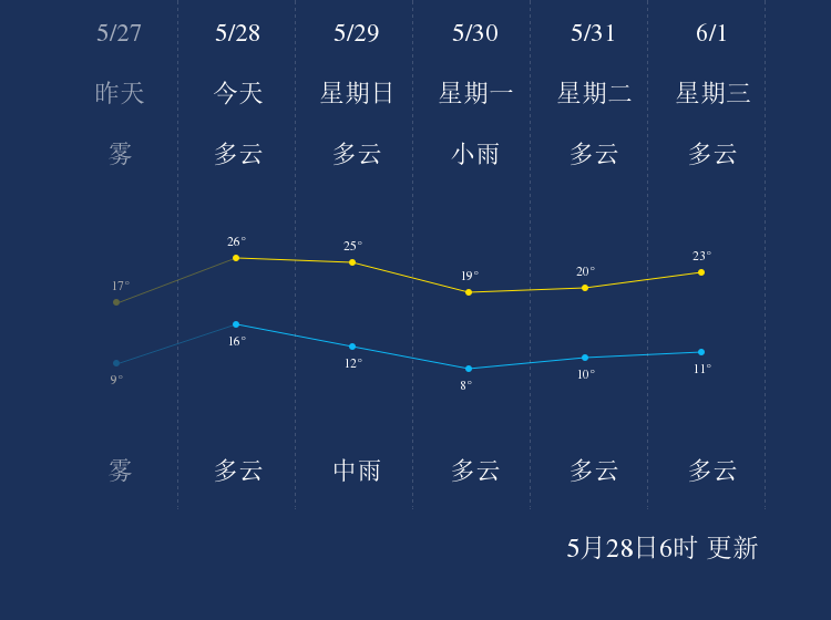 中国天气网讯 今天是5月28日星期六,一起来看天气。