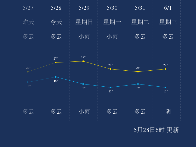 中国天气网讯 今天是5月28日星期六,一起来看天气。