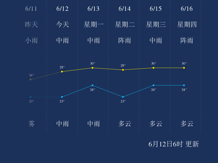 中国天气网讯 今天是6月12日星期日,一起来看天气。