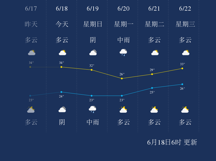 中国天气网讯 今天是6月18日星期六,一起来看天气。