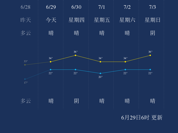 中国天气网讯 今天是6月29日星期三,一起来看天气。