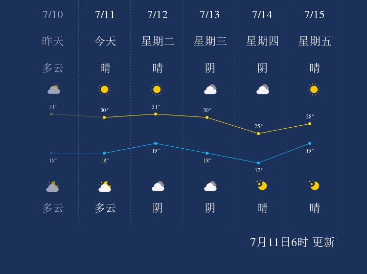 中国天气网讯 今天是7月11日星期一,一起来看天气。
