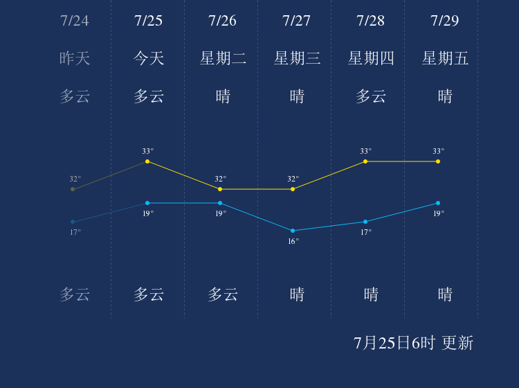中国天气网讯 今天是7月25日星期一,一起来看天气。