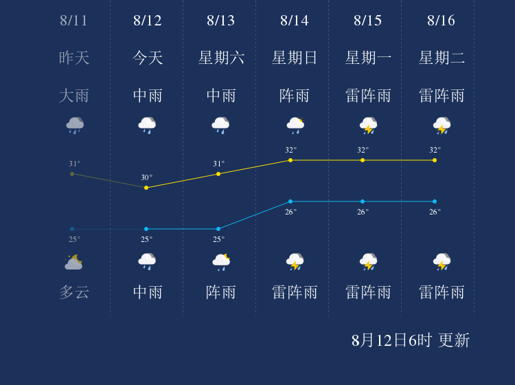 中国天气网讯 今天是8月12日星期五,一起来看天气。