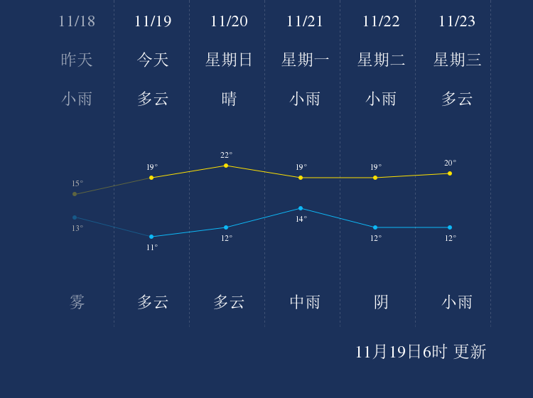 中国天气网讯 今天是11月19日星期六,一起来看天气。