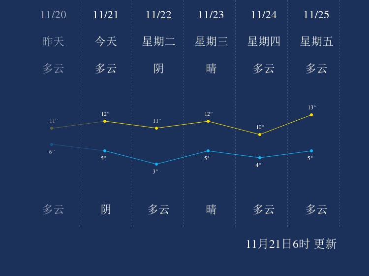 中国天气网讯 今天是11月21日星期一,一起来看天气。