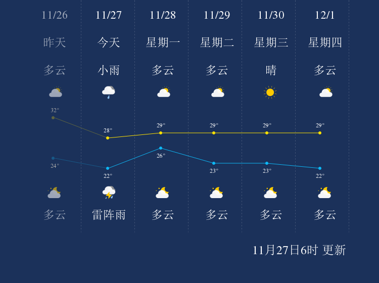 中国天气网讯 今天是11月27日星期日,一起来看天气。