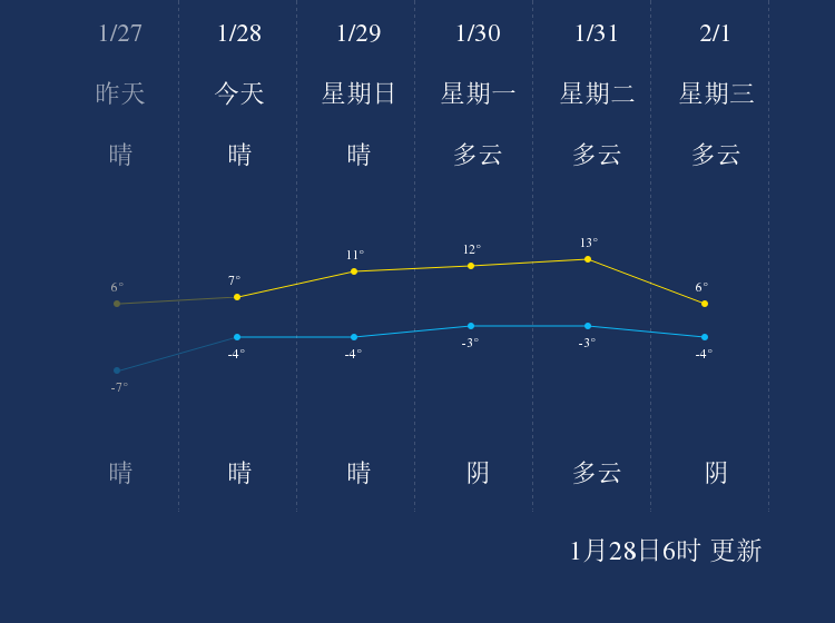 中国天气网讯 今天是1月28日星期六,一起来看天气。