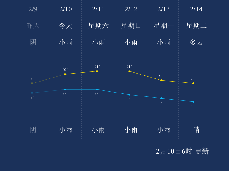 中国天气网讯 今天是2月10日星期五,一起来看天气。