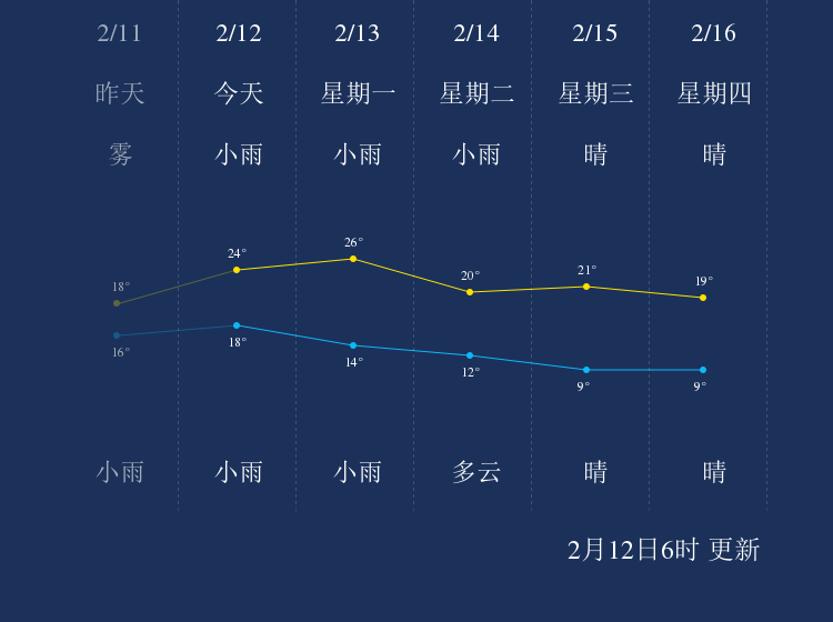 中国天气网讯 今天是2月12日星期日,一起来看天气。