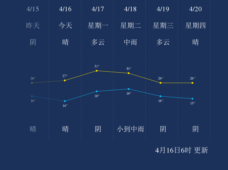 中国天气网讯 今天是4月16日星期日,一起来看天气。