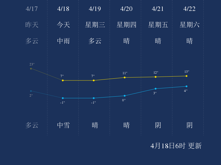 中国天气网讯 今天是4月18日星期二,一起来看天气。