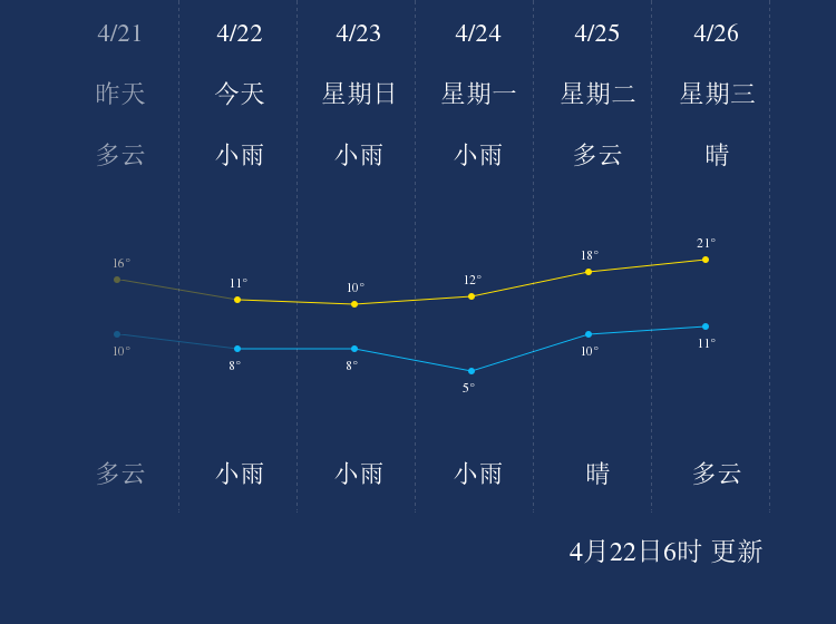 中国天气网讯 今天是4月22日星期六,一起来看天气。