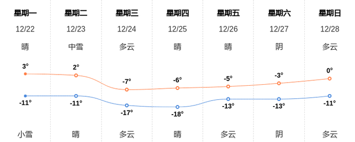 今天是12月22日星期一,一起来看天气。
