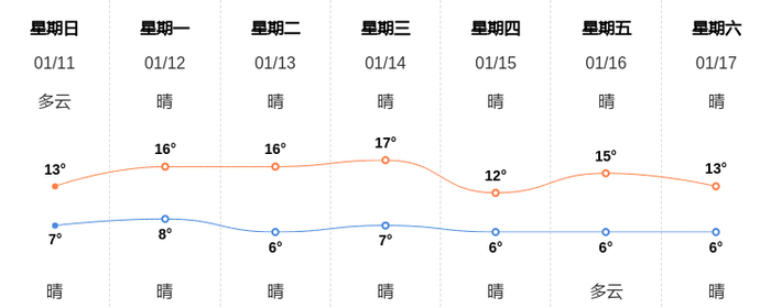 今天是1月11日星期日,一起来看天气。