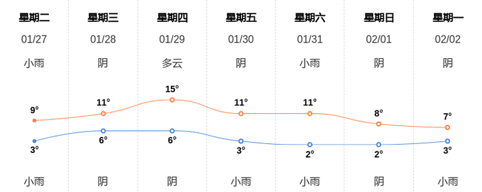 今天是1月27日星期二,一起来看天气。