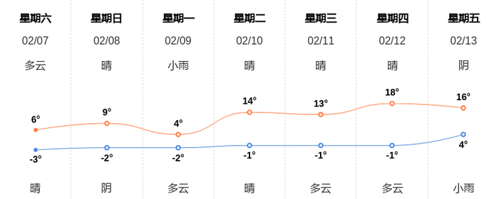 今天是2月7日星期六,一起来看天气。