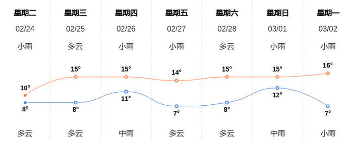 2月24日苏州天气早知道 新浪新闻 新浪新闻官方账号 02.2407:16 关注 今天是2月24日星期二,一起来看天气。预计今天白天小雨,最高气温10℃,东北风3级,今天夜间多云,最低气温8℃,东北风3级。空气质量方面,AQI指数28,空气质量为优。空气质量令人满意,充满新鲜空气。