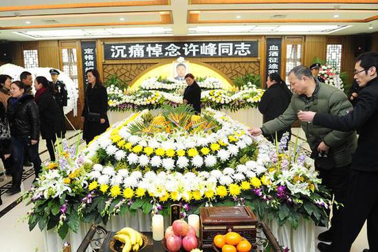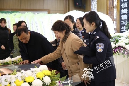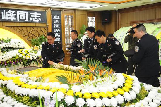 素花环绕,哀乐低回。3月16日上午9时,牺牲在抓捕路上的重庆刑侦民警许峰遗体告别仪式在重庆市石桥铺殡仪馆举行。数百名各界群众、许峰生前同事、亲友自发前来告别,缅怀许峰光辉而短暂的一生。