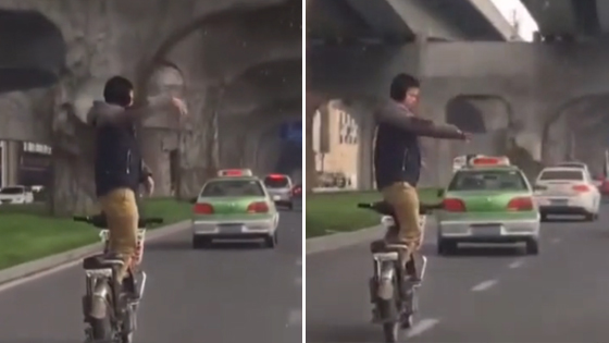 高手在民间!男子在行驶的电动车上打太极