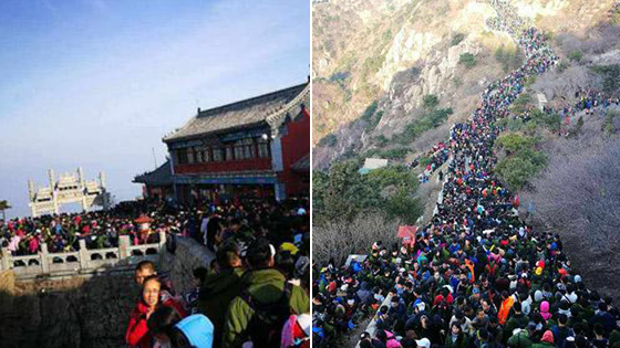 清明假期泰山游客爆满 看日出或成看人海